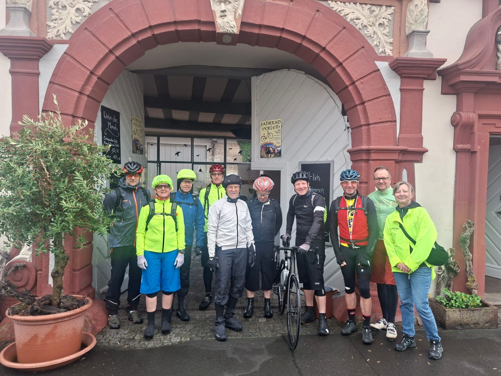 Eine kleinere Panne mit Speichenriss später und nach weiteren 70 km kamen wir gut gelaunt im unserer Unterkunft in Sommerach an. Das Gepäck war bereits von unseren 3 „Wanderdamen“ auf die Zimmer gebracht, der Tisch im Weinkeller-Hof reserviert und alles organisatorische vor Ort geklärt. Vielen Dank für die großartige Unterstützung an Anja, Jutta und Gerlinde.