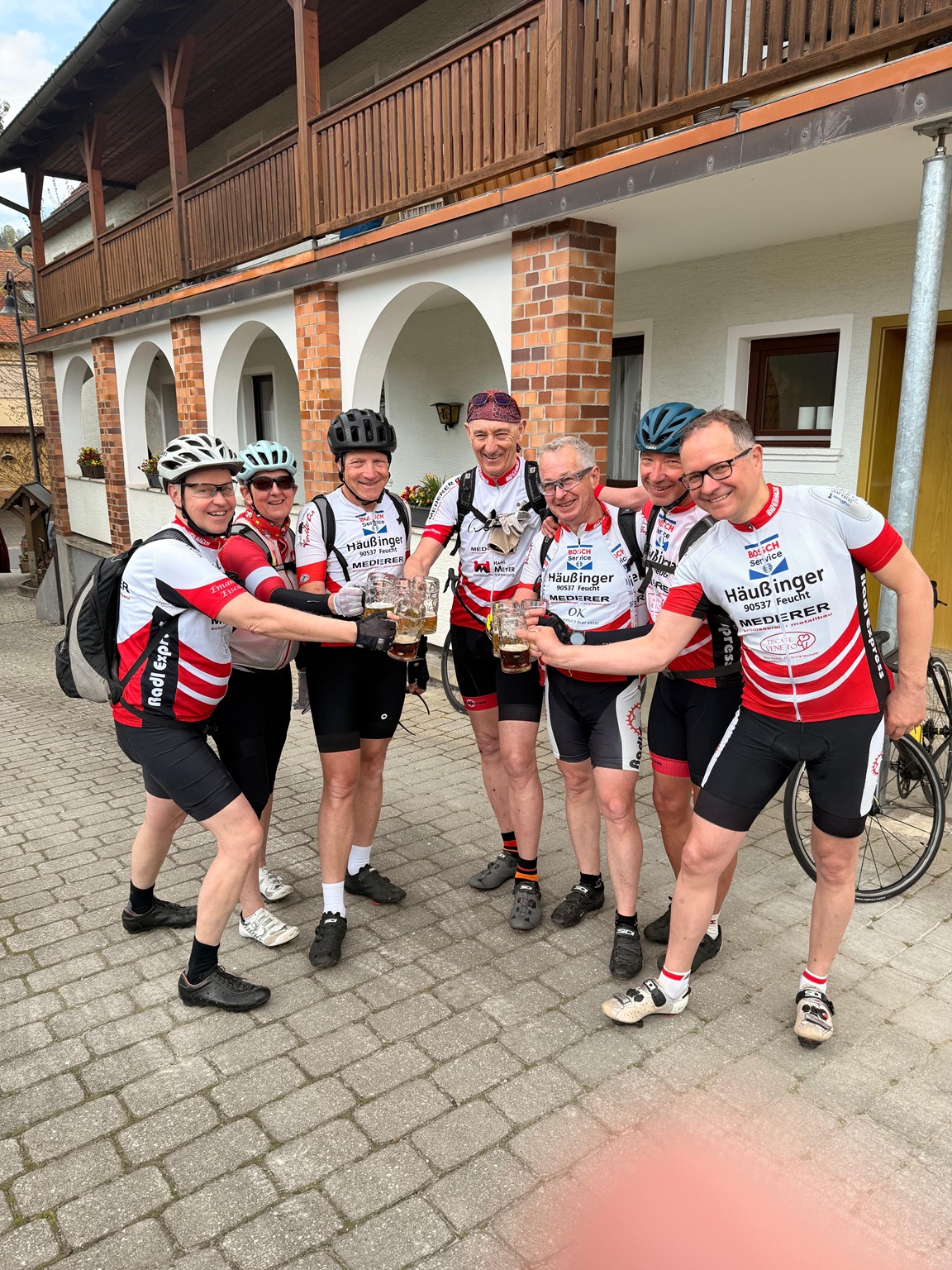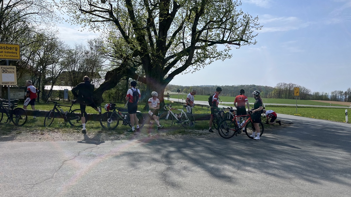 Nach der Stärkung lagen keine größeren Schwierigkeiten vor uns. Ein Platten teilte die Gruppe, bei Cadolzburg wurde unser Nürnberger Radfreund verabschiedet und danach mit ordentlich Speed gen Heimat gebolzt. Noch auf einen kurzen Sprung bei einem „erfahrenen“ Nightrider zum Geburtstagsgruß angehalten, löste sich die Sommerach-Mannschaft in die verschiedenen Windrichtungen auf.